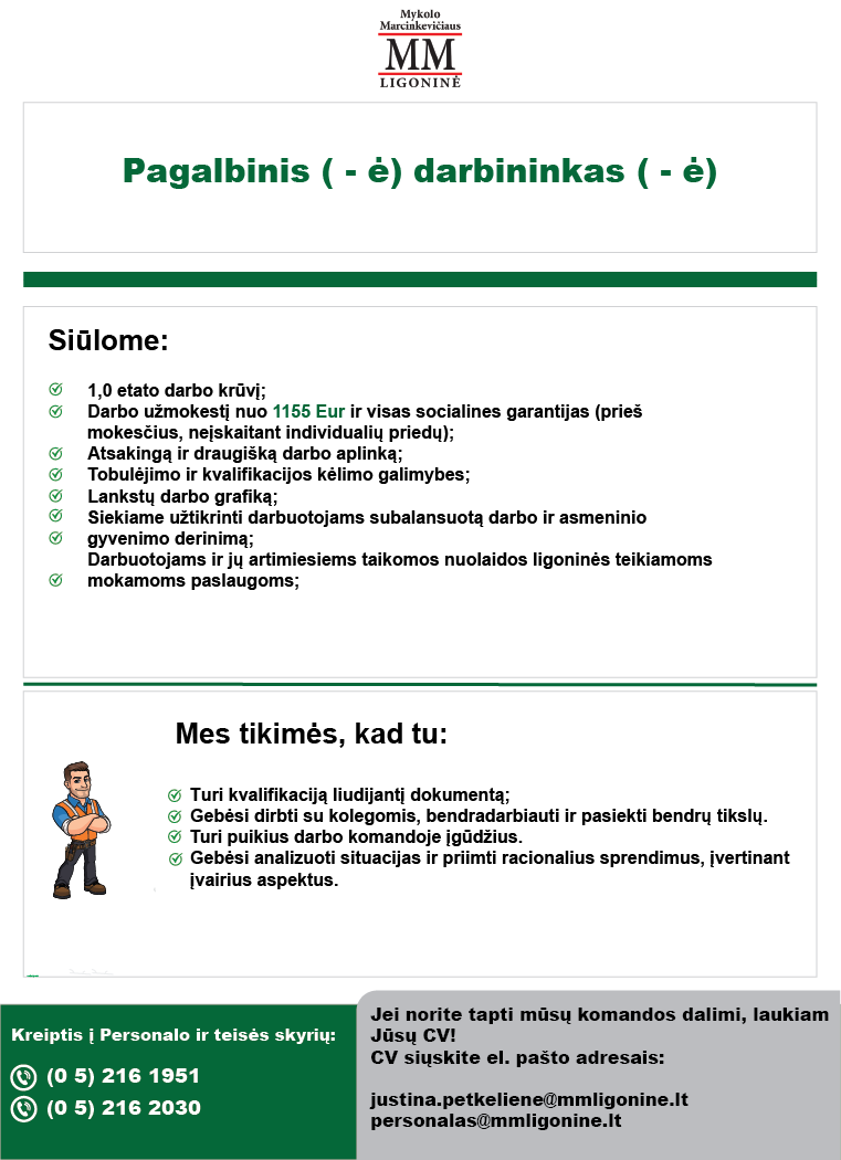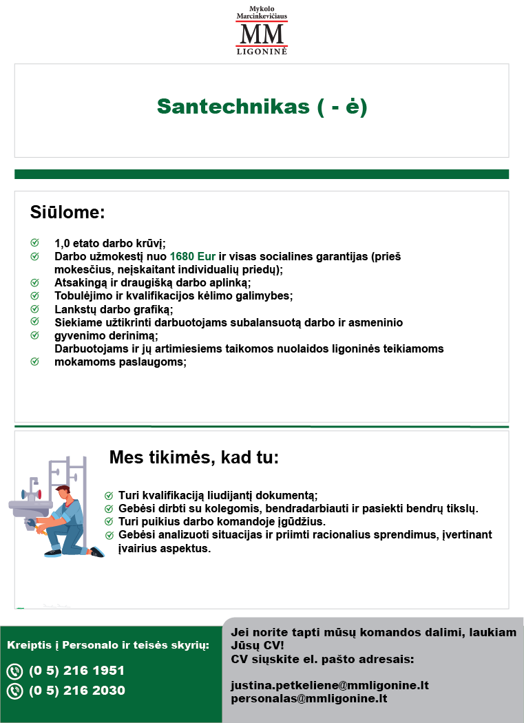 Siūlome darbą: